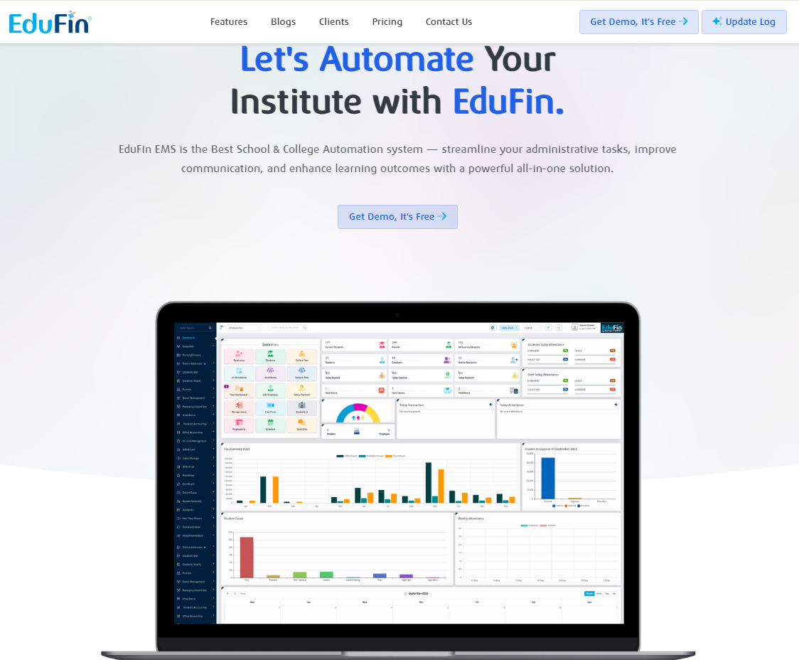 EduFin EMS is a modern, all-in-one school management system designed to simplify administration, finance, academics, and communication between teachers, students, and parents. With features like fee automation, attendance tracking, online admissions, exam management, and reporting, EduFin EMS enables institutions to operate more efficiently and transparently. Its clean interface and scalable architecture make it ideal for schools of all sizes. http://www.edufinems.com
